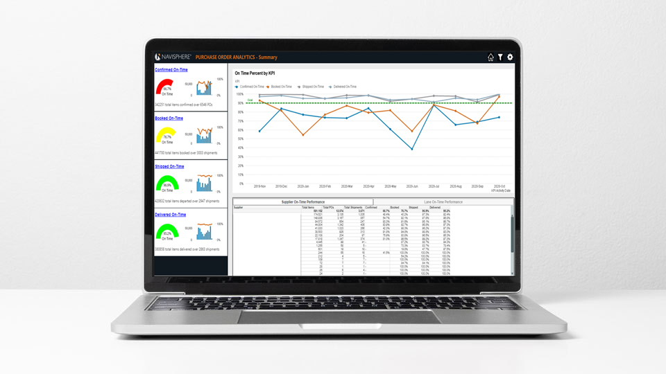 Desde la creación del pedido hasta la entrega de la carga, mantenga el control de los procesos de su cadena de suministro global. Con la Gestión de Órdenes de Compra de Navisphere®, obtiene toda la información que necesita sobre el estado de las órdenes de compra, el cumplimiento y las actividades de envío internacionales relacionadas en un solo lugar. Utilice la conectividad ascendente a los proveedores y las alertas proactivas para resolver problemas casi en tiempo real. Y convierta los potentes informes y análisis de los datos de la cadena de suministro en mayor eficiencia y ahorro.