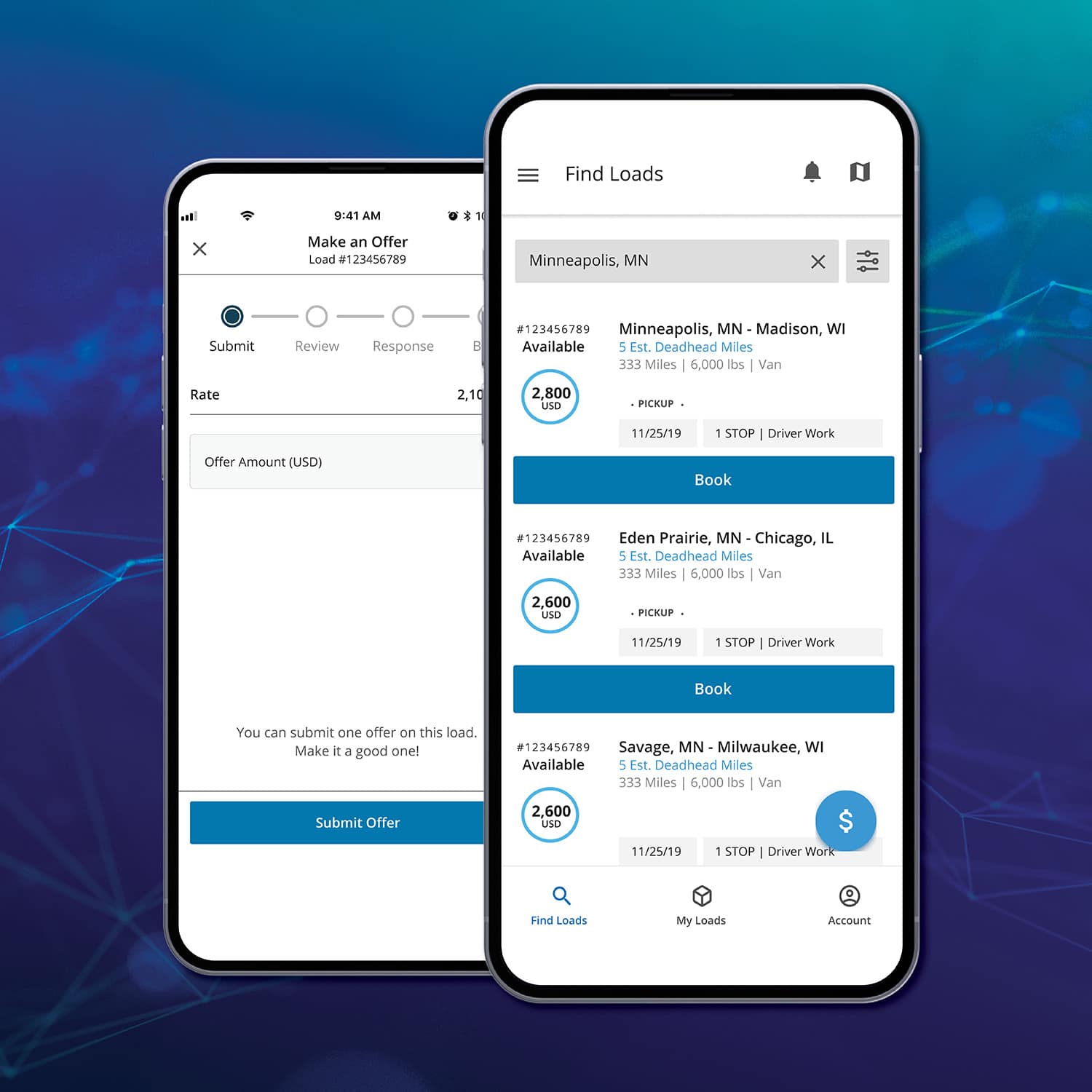 Inscrivez-vous dès aujourd'hui et profitez du fret dont vous avez besoin grâce à des centaines d'options de chargement quotidiennes— court-courrier et long-courrier, camionnage uniquement, transfrontalier et plus encore. Nous disposons de plus d'options de chargement que les autres prestataires, nous proposons des outils,des ressources et des possibilités de chargement que vous avez besoin pour assurer le bon fonctionnement de votre entreprise.