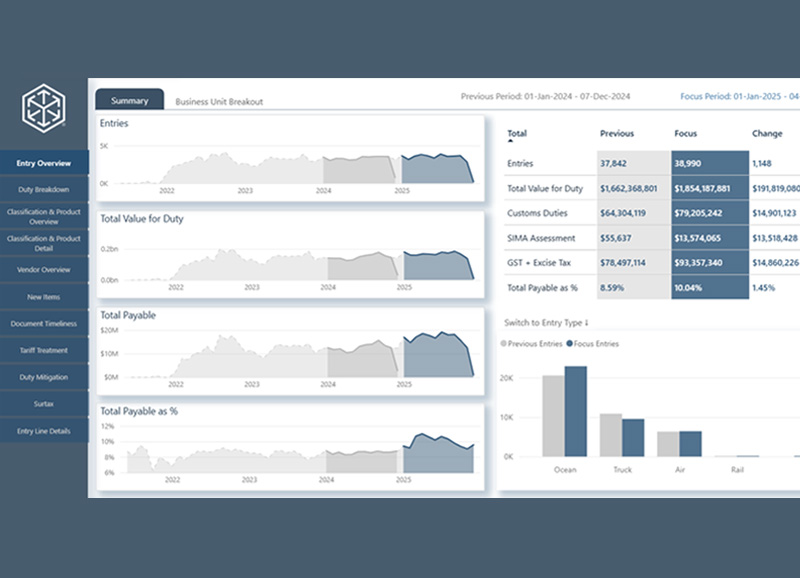 Avec une vue historique complète de votre activité douanière C.H. Robinson, notre outil Canada Customs Analytics vous aide à :