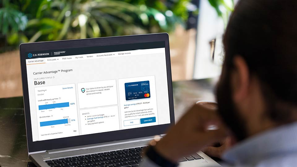 Todas as transportadoras contratadas são membros automáticos do nosso Programa Carrier Advantage, mas os benefícios que você recebe dependem de você. Nós reconhecemos um serviço superior com descontos em combustível, manutenção e opções de Quick Pay.